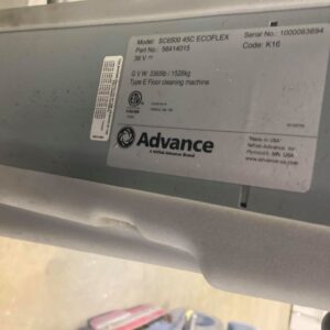 | ADVANCED SC6500-45C DISK SCRUBBER W/CHARGER; FULLY OPERATIONAL; MISSING SQUEEGEE VACUUM HOSE, REAR SQUEEGEE ASSEMBLY & RIGHT SIDE SQEEGEE |